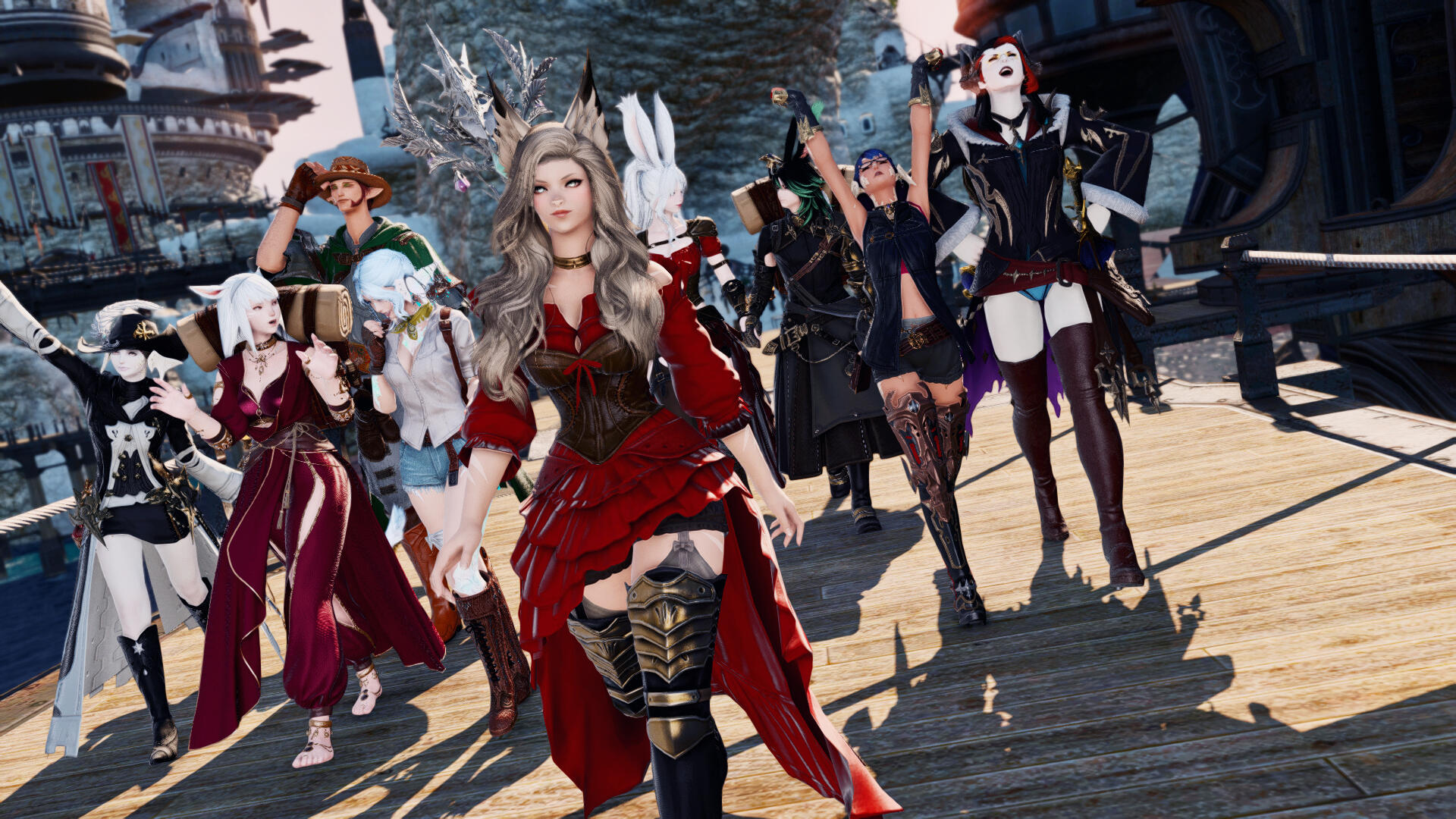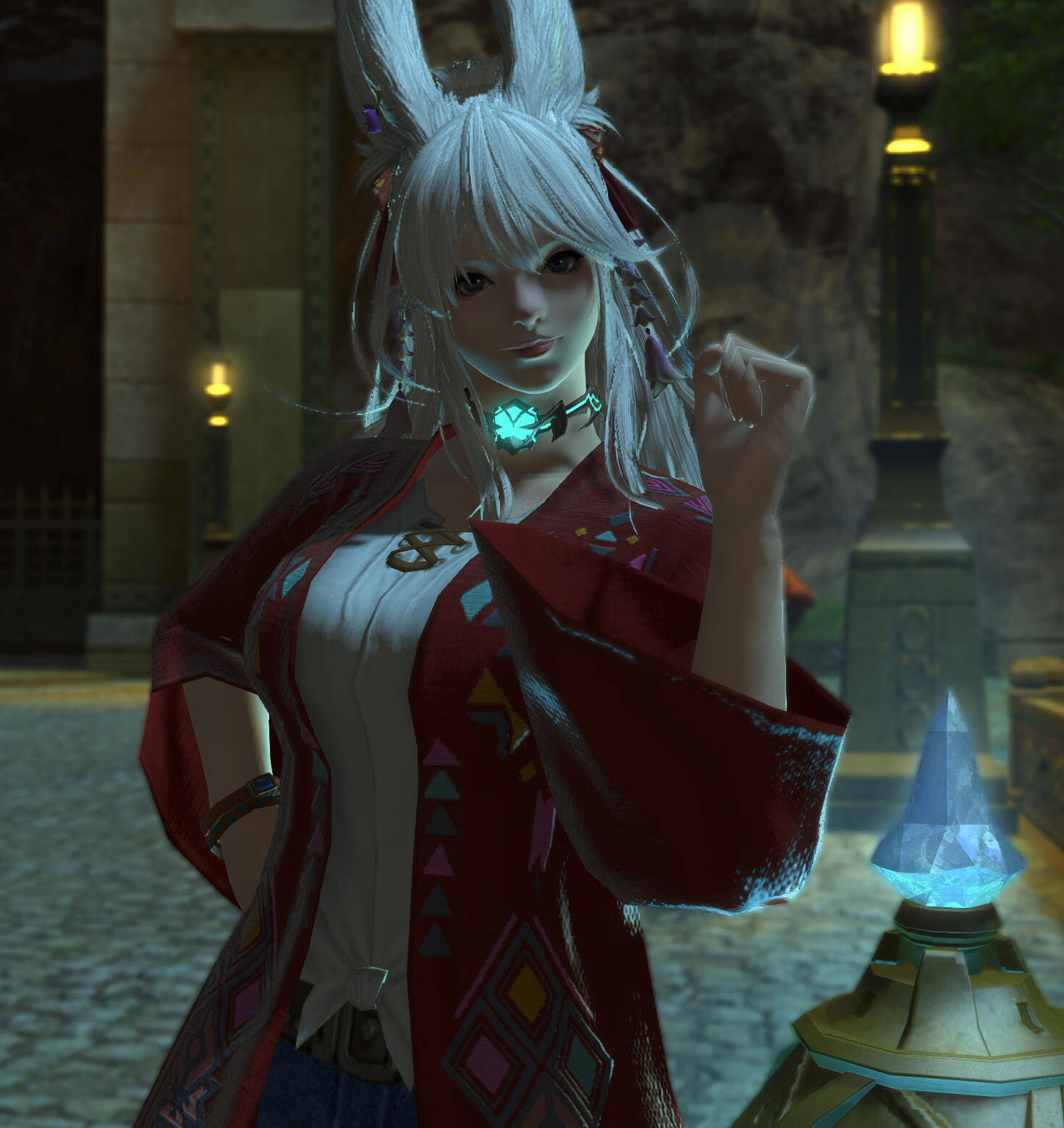 Ethel took several weeks to cope with the loss of her departed mentor's last gift. The couple's lush cocoon of serenity was no more... Despite fair gil compensation, some things were simply irreplaceable. Yet, the most pressing matter was to find shelter. Thankfully, Kisne started to work few months priors for well-established free company, and sought assistance there.In this trying time, the gentleness and consideration offered helped the couple, but most of all Ethel. The leader offered a portion of the company hall's attic for them to live as long as necessary, making sure to make the place decent. An honest work was even offered to the ladybun left without stable earning with the destruction of her cloth craft tools. Aware of Ethel's training, "the Madame" took her in trial as a scout for her hunting troupe.And so, encouraged by her love, the ladybun put all her efforts in her dancing arts. Until her master considered her ready to make her debut as an initiate... Albeit the show went close to a very embarrassing one for Ethel, she passed. As a parting gift, the viera was entrusted with a soul crystal to make further steps on the Kriegstanz' path.The wearer let place to the adventurer, right in time for a big event shaking Eorzea ; trade routes for the western continent of Tural were about to open, bearing promise of a New World full of discoveries and riches.