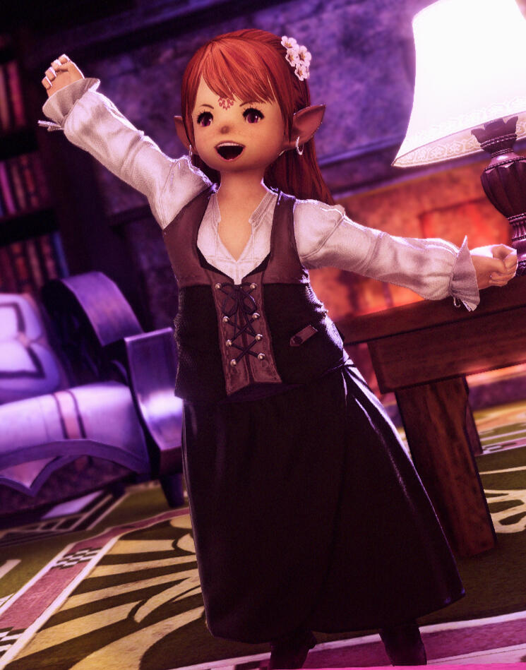Calamity caused many distresses and hard time for most, merely and annoyance for the richest in their ivory towers. However, budget cuts was in order… What to do about a low-value slave? Simple, throwing it away. Even better in a deadly situation for one last laugh, for instance in the Coearthian blizzard flocking with wolves.And such was her fate during a business trip of her late owner, left naked and beaten in the snow. She desperately tried to find shelter, in vain. Only as she was about to collapse, her body frost-bitten, she saw a fire light from a cave. But instead of help, only cold steel welcomed her. A wary man in strange armor adorned with spikes, speaking of her as alien or heretic. She tried to plea her cause in the very limited capacity she had, but only collapsed near the fireplace. Would death set her free? It was her last thought before awaking in the comfort of a warm bed in a modest house in the Holy City of Ishgard.The dragoon knight she met in the mountain had dumped her on the doorstep of his mentor, a retired hyur veteran by the name of Yvain Belami. The man was internally boiling from the veena’s state and sworn to see her back to health. Regardless of the rumors to take a stranger woman in his abode, he spent much time and energy to give her back slivers humanity. Teaching her to read and write to communicate with a slate and chalk stick, behaving like a proper citizen, even giving her a name. Ethel, borrowed from a small now frozen stream he used to fish. Never he touched her, giving instead the warmth of a friend, mentor, and the closest she could ever recollect of family.