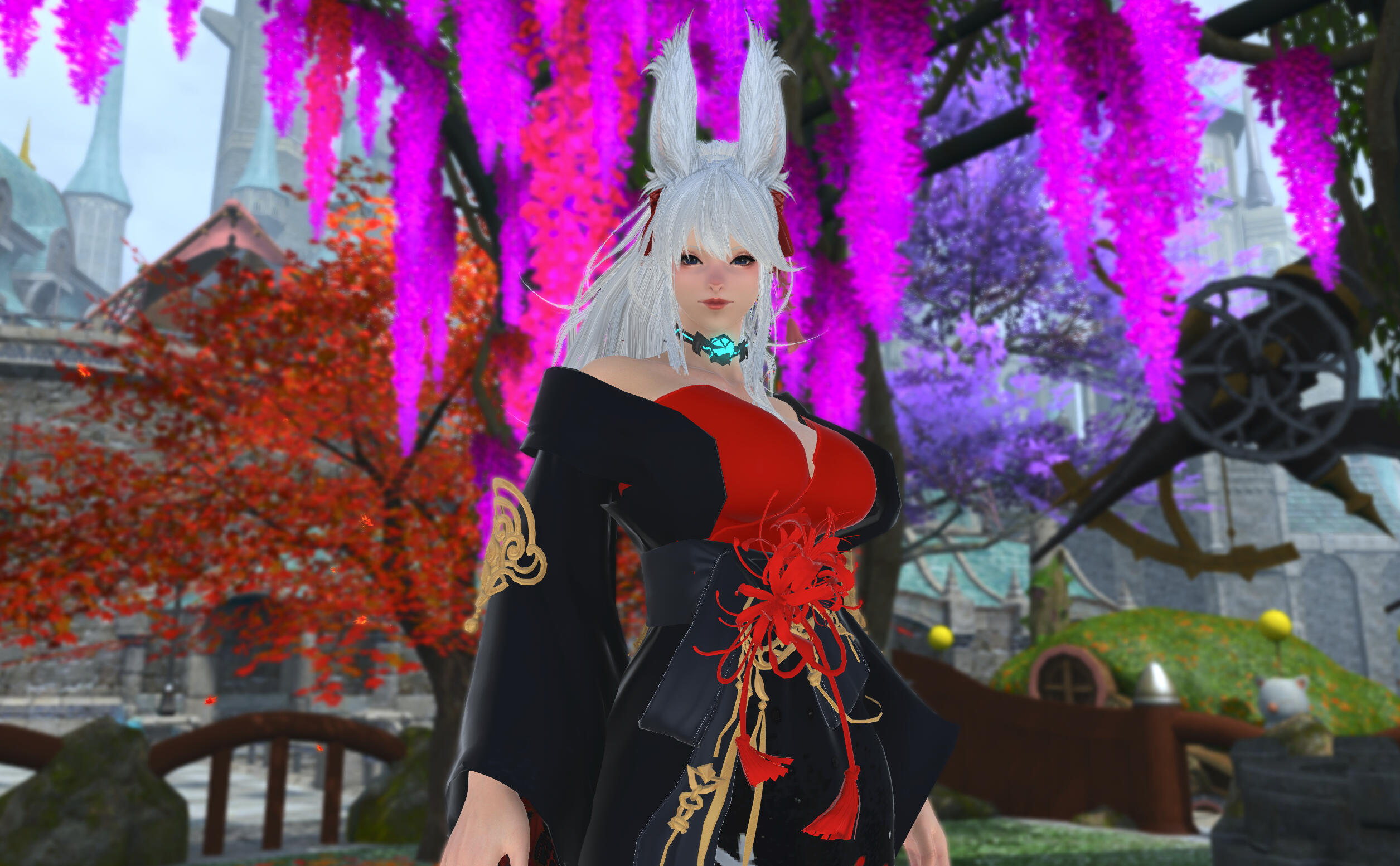 "Yet master Nashmeira keep on her legendary patience, guiding me quite literally step by step ! Her tutelage was precious, but not enough now I realize. So much different forms, accessories... I still hope there is more covering attires ! I was dying inside during my debut as an initiate =:x"